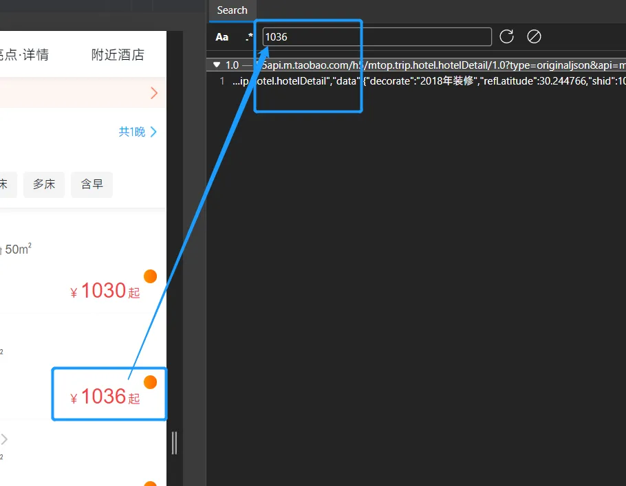 使用Ctrl+F查找页面中对应价格的数字,定位到请求数据包位置。