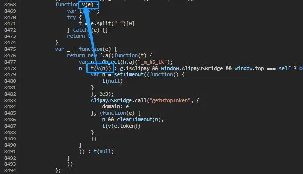 显然该方法是用来获取cookies内的_m_h5_tk的值,并且执行方法v(n),将_m_h5_tk的值用下划线"_"分割,取左边部分。